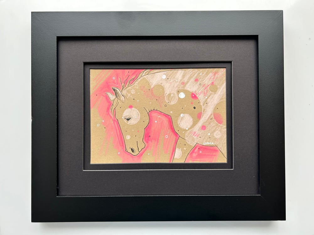 This is a fun-one of a kind original drawing in Liz’s funky experimental style. And yes, PPC stands for that song about pink ponies, good luck getting that out of your head (ha!)