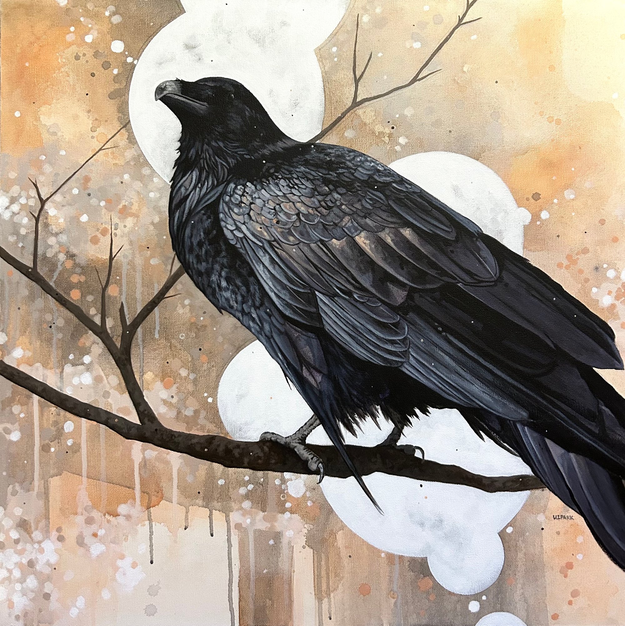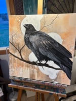 This is an original, detailed acrylic painting of a raven.